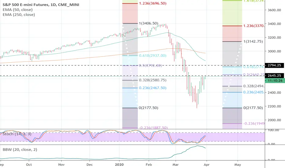 End of month, quarterly rebalancing and general retracements have resulted in the S&P rallying sharply over the past few days. The fundamental news remains bleak with much of the world economy shut down due to the pandemic. I am moving to cash and by the end of the day will be liquidated holding only a few oil stocks and a scattering of dividend plays that I like for the long term. Yesterday I entered into a TBT (2X short long bonds) as I feel TLT is topping.