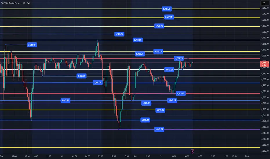 As of writing this post, 6893 has been building a nice base that should give us a move higher, any price action that clears 6902 prior to 9:30am open, and then can't hold that level, we should expect price to potentially move lower.