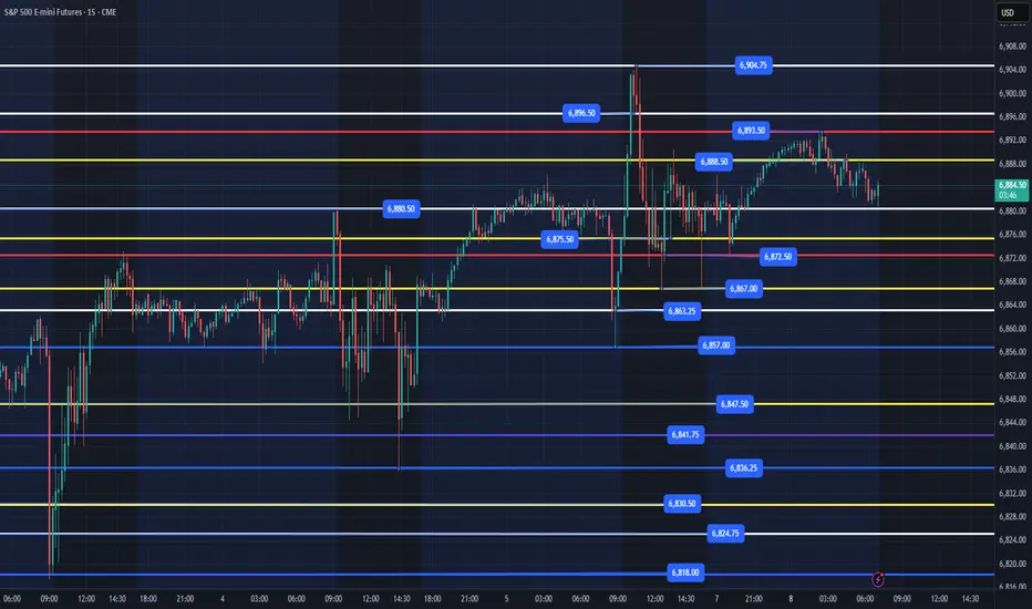 8:45am - UpdatePrice was able to test 6881 and produced a nice bonce into 6893 for a 13pt bounce. Overnight high has been tested 2x now but sold off both times. Price will most likely need to flush below 6881 to run stops and grab liquidity for institutions to take price higher. Ideally, we can flush down to 6868-70 and reclaim 6872 to move higher. I do anticipate if price tests the overnight high again, we should continue higher. Maybe one more dip before it takes it out.