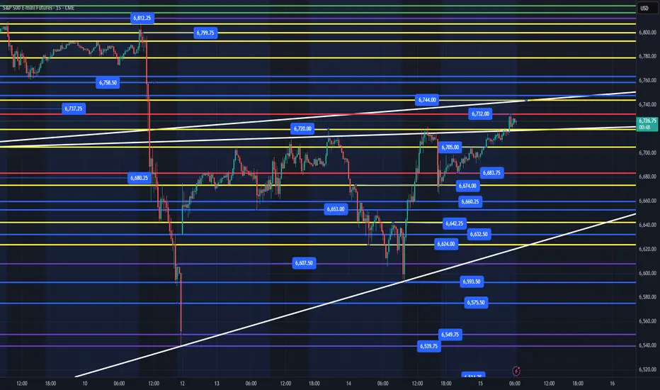 As I have watched price action this am, the 6720 level could be a good level IF, we flush and reclaim it. In my trade plan, I have 6705 as my first level. While that is still what I am looking for, I also recognize that we do not always pull back to overnight or previous day's lows. (6705 is one of those levels that do not adhere to my core level setups) You have to improvise and recognize what price is doing in real-time. My lean is still that we are at the top of the range, while we may get a pop at the open, I do believe we get a decent pull back. IF, price opens up in the first 30 mins and we have not lost 6705, I would be watching for any flush of 6720 and reclaim. You could wait for the reclaim of 6732, also. Expect some volatility in the first 30 mins as Bulls/Bears battle it out on direction for the day.