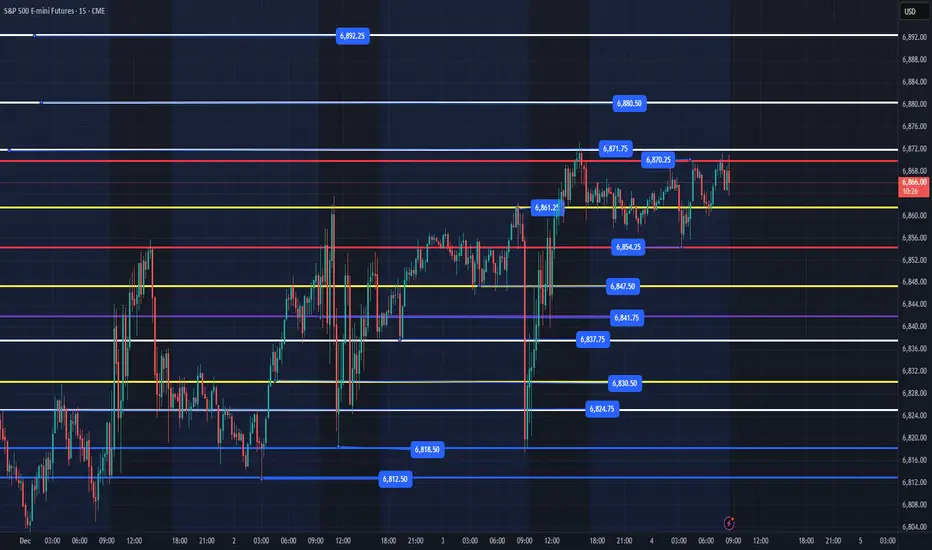 9:41am - Price flushed 6872 down to 6861 then lost it down to 6859 and reclaimed 6861. I was able to take a position at 6863 and my stop is at 6859. I sold 3/4 of my position at 6871 and my runner is at break even. Price needs to hold above 6873 to keep going higher.