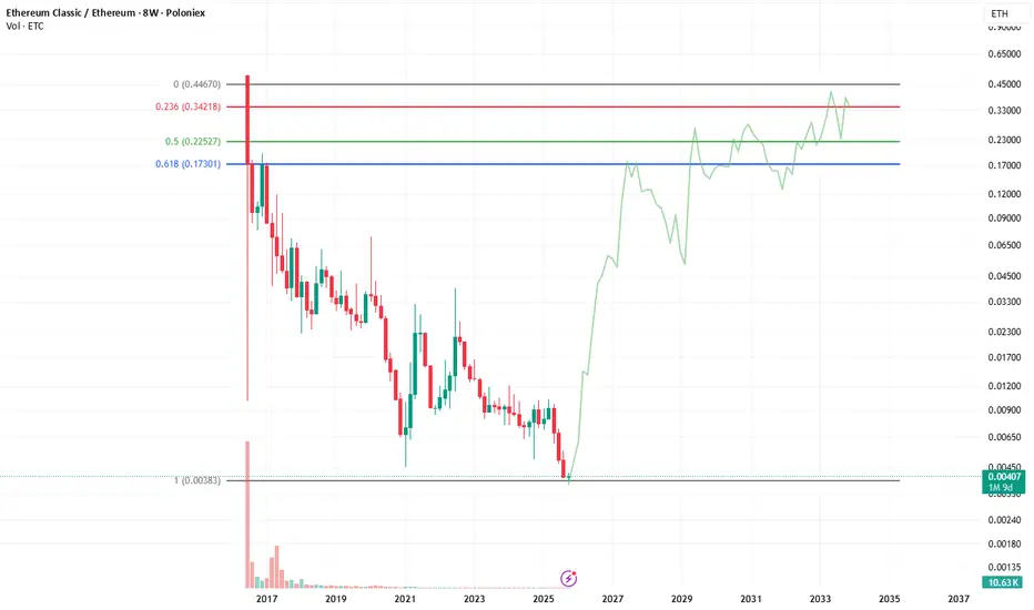 At current levels around ~0.004 ETC per ETH, the ratio trades near historical all-time lows. Extended downtrends eventually exhaust sellers, and even small new inflows can drive disproportionately large upside.