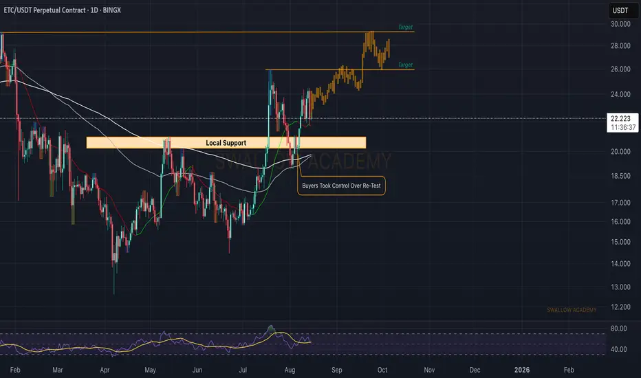 Since last time we looked at it, ETC price has had a decent bounce. As we see the buyside dominance on the 1D timeframe, we are looking now for further movement to upper high zones, where we might be seeing some kind of rejection, so until then we are bullish!