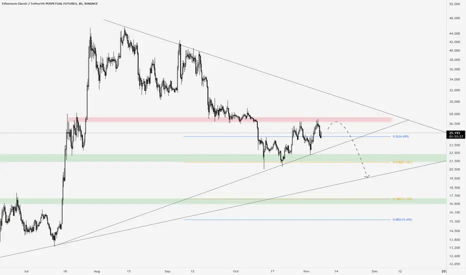 After the rapid trend, ETCUSD is now in static support and the Fibonacci golden zone of 0.618, but it has undergone a sharp correction. I think it cannot break the downward trend and descend to the lower levels