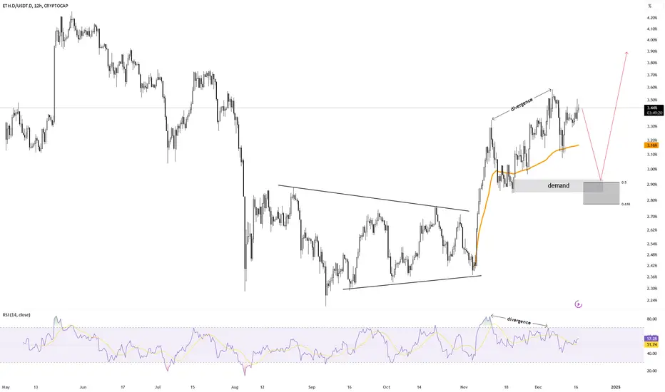 this chart is made by dividing ETH.D and USDT.D this means alot ! because this chart shows us how the liq is going through the markets !