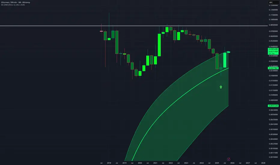 ETHBTC has found its footing on the middle of this Gaussian Channel indicator.