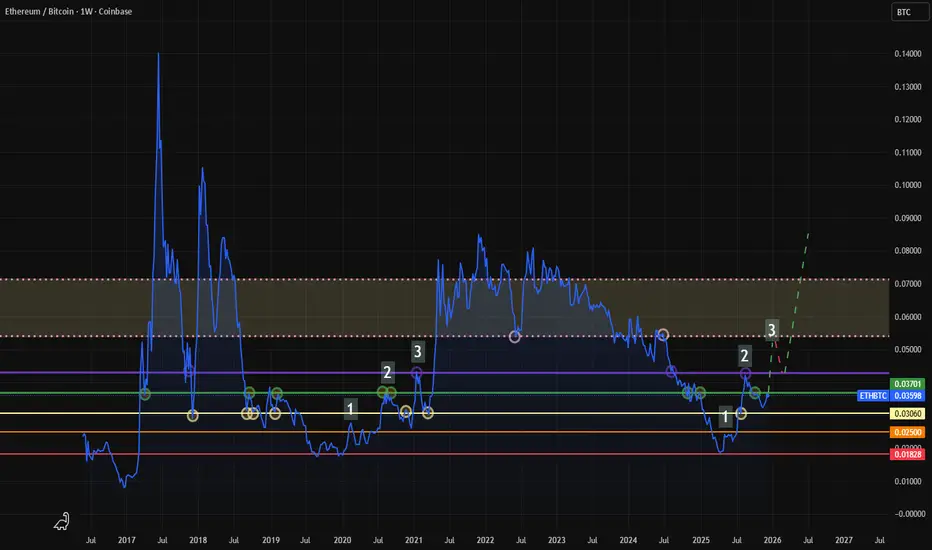 Buy any dips after the Santa Rally down to current resistance 0.037 [green line]