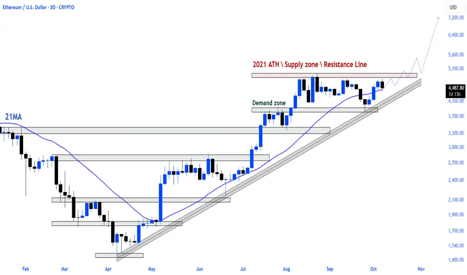 Ethereum maintains its upward trend as it approaches the supply zone and major resistance line from its 2021 peak once again.