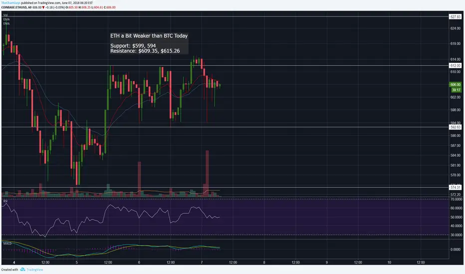 ETH has a couple spikes in bear volume the last couple days that have hindered the bulls a bit.
