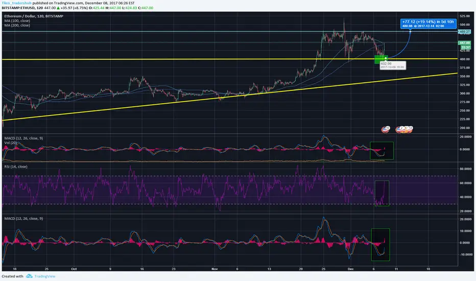 ETHUSD has perfect set up for rebound back to upper ressistance level. If momentum stays positive we should easily go over it. MACD & RSI, placed perfectly with bullish momentum and also volume is getting better.