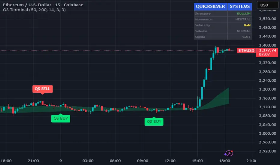 The Quicksilver Master Terminal is a comprehensive data visualization interface designed to bring institutional-grade market awareness to the retail chart. It replaces the need for multiple cluttered indicators by consolidating Trend, Momentum, Volatility, and Structure into a single Heads-Up Display (HUD).