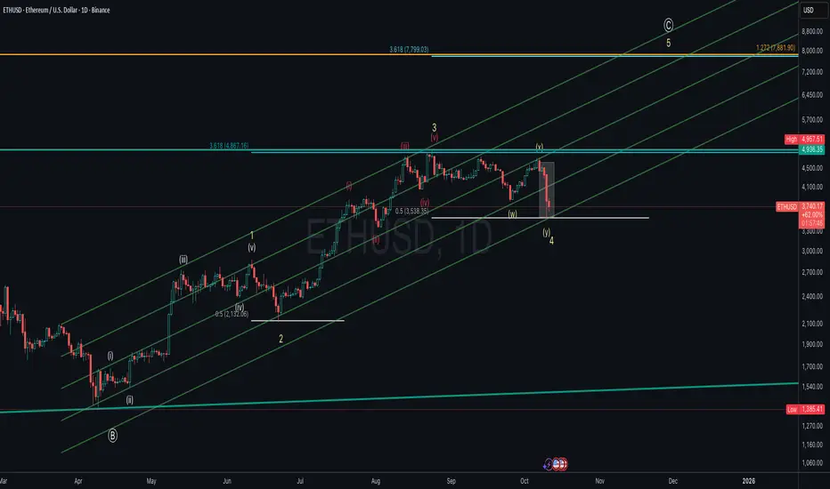 If ETH breaks below $3,500, it could invalidate this immediate bullish count and suggest a deeper correction.