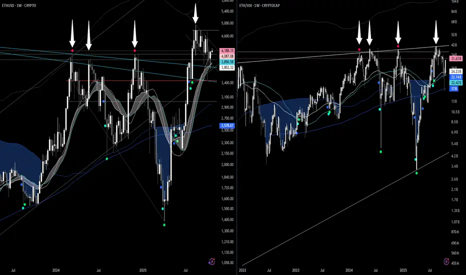 Going to toss out a little free alpha for everyone... use the ETH/VIX ratio (works also for BTC and BTC/VIX ratio) to look for local tops. It has been 100% reliable this cycle. Likely will be accurate for the cycle top as well.