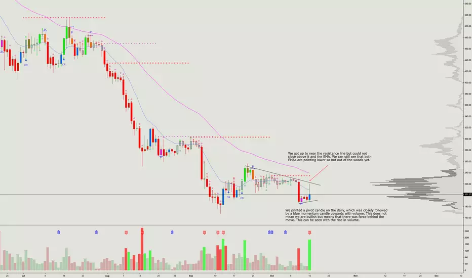 Ethereum had a spike up but still hasn't really gotten anywhere and stuck near $200. For us to be bullish, we would need to need to close above this POC level we are currently stuck in.