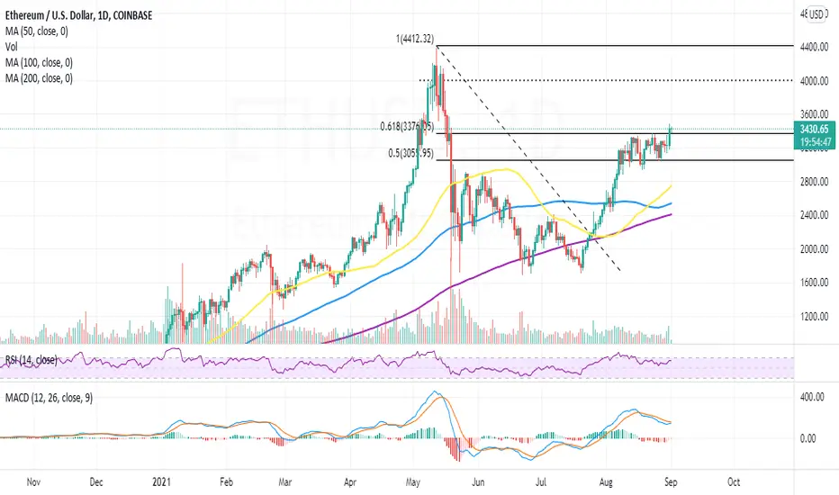 Ethereum jumped to a 14-week high of $3,484 on Tuesday following a confirmed break above $3,200 on Monday. The gigantic smart contract token swung above the prevalent resistance provided by the 61.8% Fibonacci resistance level, paving the way to a new August high.