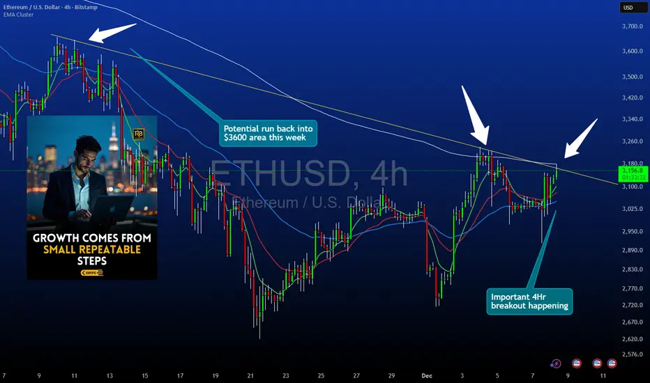 Stops would be referenced below 2950 since a move under that area would indicate failure to hold recent structural support. The 3600 region is used as the first upside reference point based on previous reactions on the 4 hour chart.
