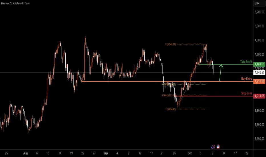 Stop loss is at 4,011.05, which is a pullback support that aligns with the 78.6% Fibonacci retracement.