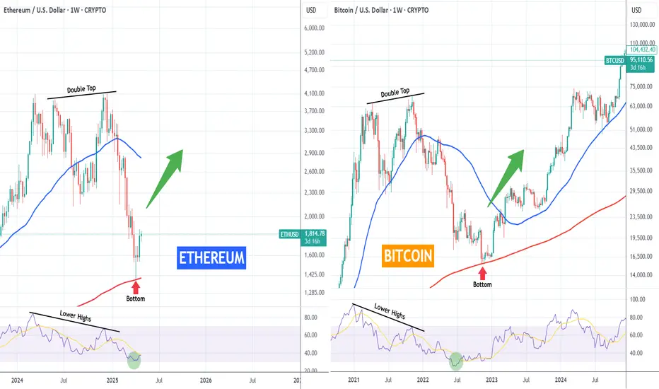 Odd comparison but you'd be lying if you say those fractals between Ethereum (ETHUSD) 2024 - 2025 and Bitcoin (BTCUSD) 2021 - 2022 don't look similar. But if you do believe it, can this mean ETH is about to see a rally to a new All Time High?