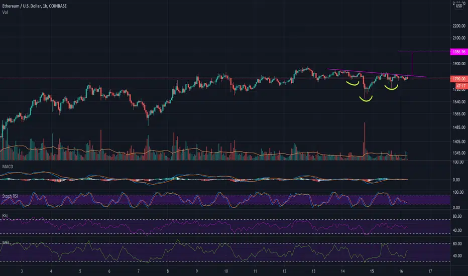I spy, with my eye, an inverted head & shoulders pattern forming after a long consolidation which was punishing on leveraged longs! That being said, it looks like ETH is about to break out and head towards $2K. Be careful out there but I am going long and strong! :-)