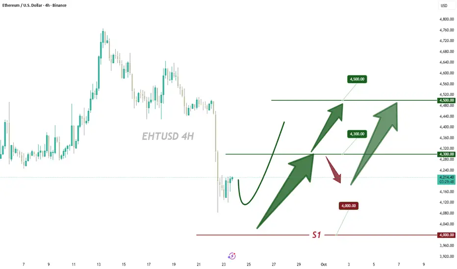ETH has stabilized its downward trend . If the 4000 support level remains unbroken , we can continue to wait for a rebound 📈
