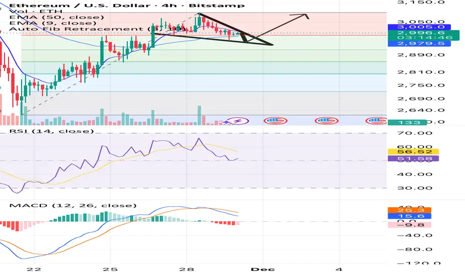 etherium in a bullish reversal pattern a down till 2960 with a bullish divergence . entry between 2955/2965 stop loss 2930 tp 3090