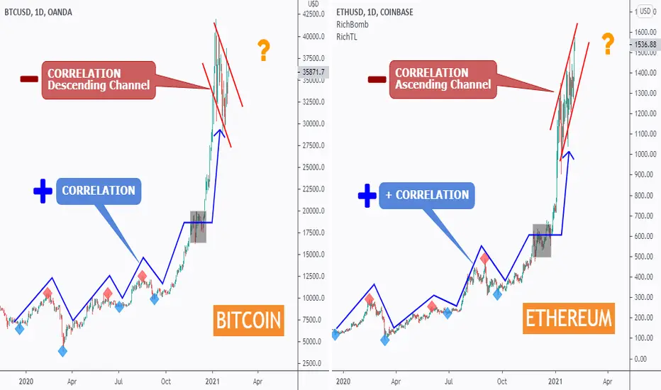 Lately, the positive correlation we used to see started to fade away! and in fact, ETH and BTC are now trading in the opposite direction.