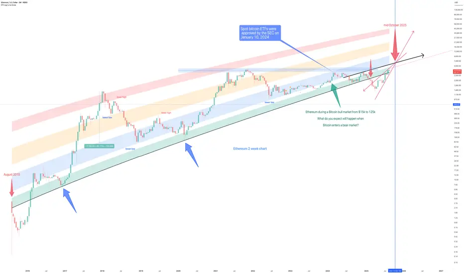 Ethereum Bulls, this is importantIt is entirely possible the $6600 area is not met before the Bitcoin market top. The two week chart below would offer strong historical resistance should it confirm. Whilst influencers are pumping out the “Institutions are buying” narrative, the chart is telling a very different story.