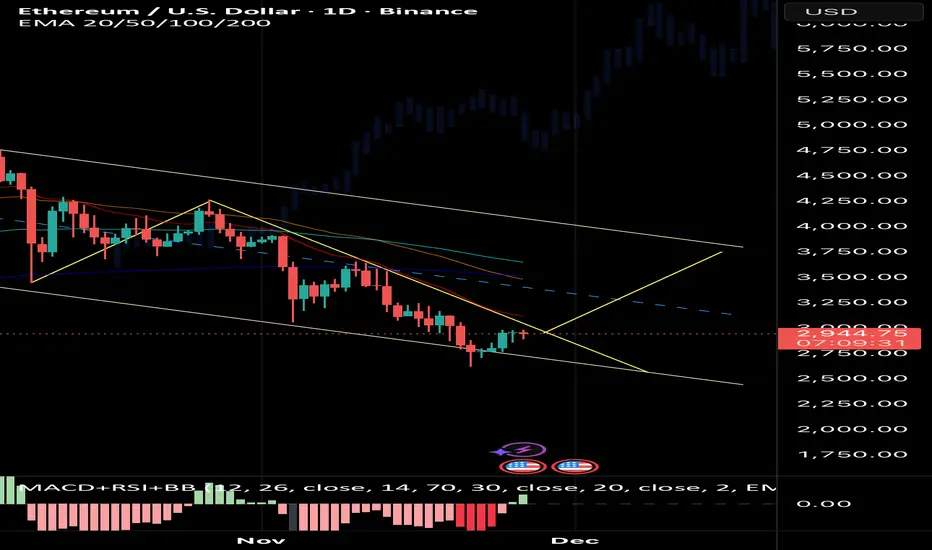 The measured move from the breakout of this triangle atleast takes us to 36-3700$. Will have to clear 3100$ first, if we reject here then this idea is voided.