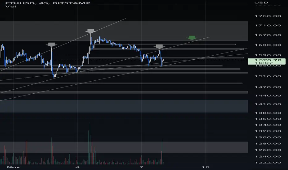 A first evident confirmation of the pattern is marked with a down arrow. At this point, I'm going to wait for a second confirmation marked in green for a better short entry.