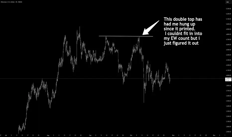 I’ve been thinking the price action would take that $3450 giant wick low low on ETH. I originally thought we were in an ABC correction and that we were going to go lower — but I couldn’t quite rectify this double top.