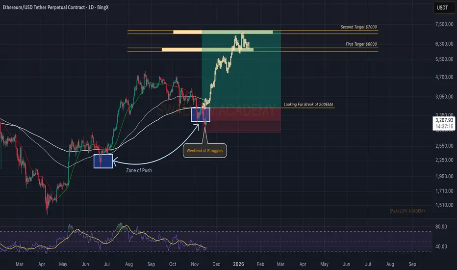 $3,240 is the zone we will be looking at for MSB to form; once we get that structure break, we will be aiming for 200 EMA to be reached and broken. (After that, we would be open to another set of long trades).