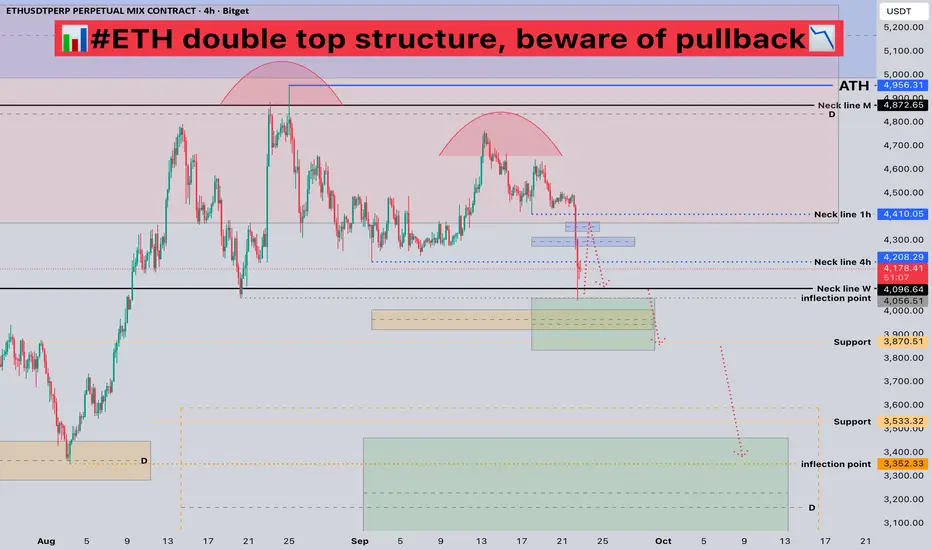 📊#ETH Double Top Structure, Beware of Pullback📉