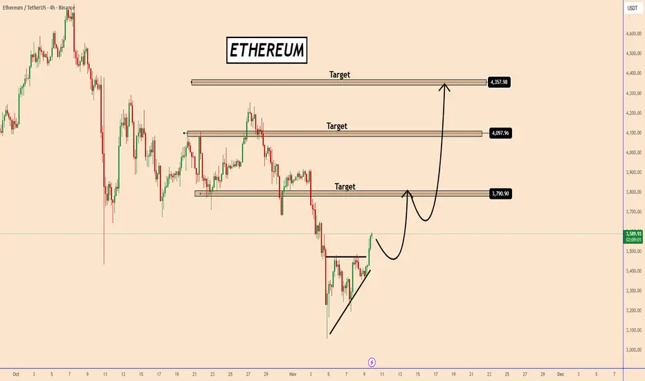If momentum continues, ETH could first test the resistance near $3,790, where a short consolidation may occur before aiming for the next upside targets.