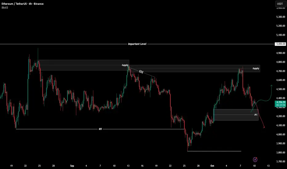 The second scenario is a break below $4,200, which could provide a short opportunity targeting $3,950, and then the 4H low. (The break must be confirmed by a full candle close, not just a shadow.)