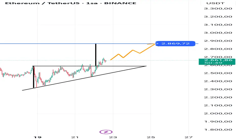1 saatlik ethereum grafiği karşınızda yükselen üçgen formasyonunu görüyoruz ve kırılım onaylandı, hedef fiyat resimde gördüğünüz gibidir. Analizim kendime not olduğu gibi yatırım tavsiyesi değildir.