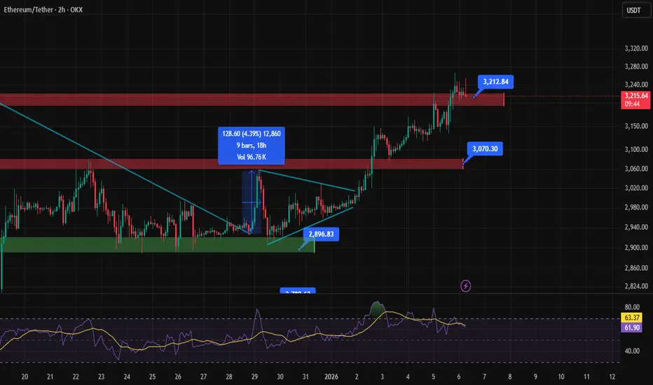 Ethereum is similar to Solana; if it goes below 3200, I expect the corrective trend to continue for it around 3080 dollars. 🔽💰