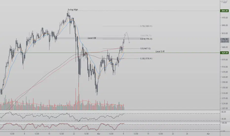 ETHUSDT Local OB| .618 Fibonacci| Price Action| Volume
