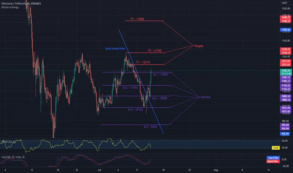 Hello everyone, let's take a look at the 4H ETH to USDT chart as you can see the price has moved above the local downtrend line.
