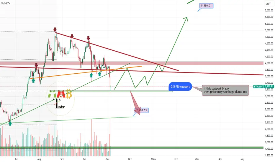 As the chart illustrates, ETHUSDT has completed a significant correction and is now testing a crucial technical level: the 50% retracement level of the Fibonacci sequence. This level often acts as a dynamic support zone in a strong trend.