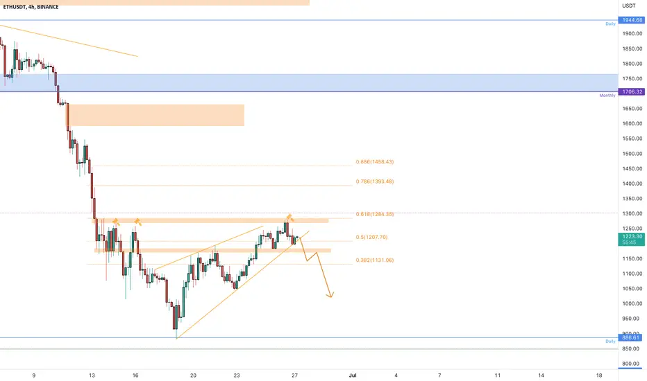 The price is creating a rising wedge on the 4h timeframe and after the rejection from the 1250$ the price is testing the dynamic support.