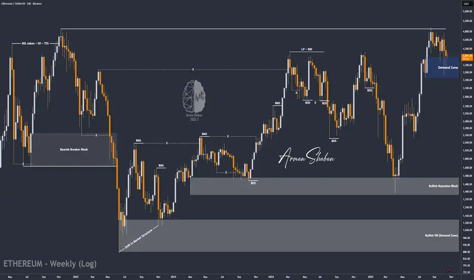 By analyzing the #Ethereum chart on the weekly timeframe, we can see that price has been consolidating around the $4,000 level after a sharp recovery from the $3,400 demand zone. This sideways movement shows ongoing accumulation, but a clear breakout and close above $4,000 is still needed to confirm renewed bullish momentum.