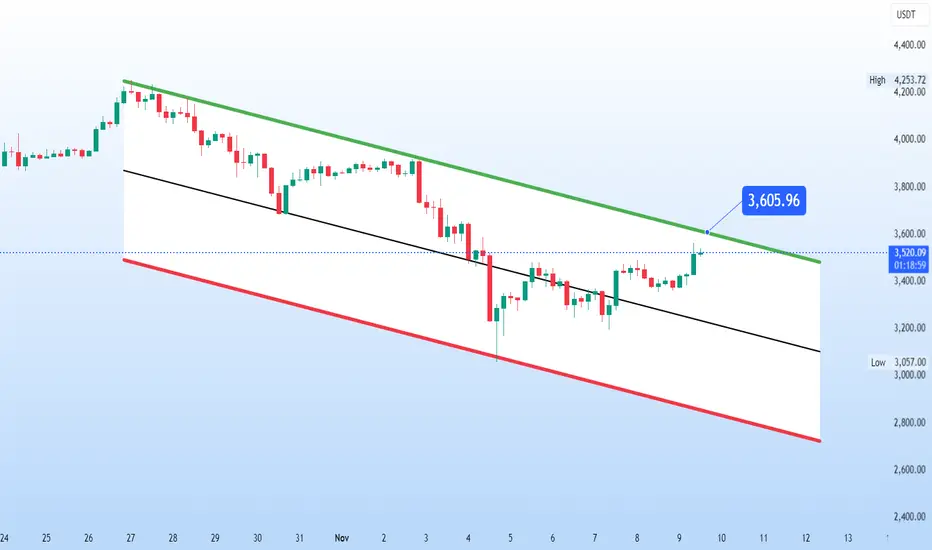 Price is now testing the mid-range and approaching the upper boundary near $𝟯,𝟲𝟬𝟬. Until this channel breaks to the upside, I can’t turn bullish.