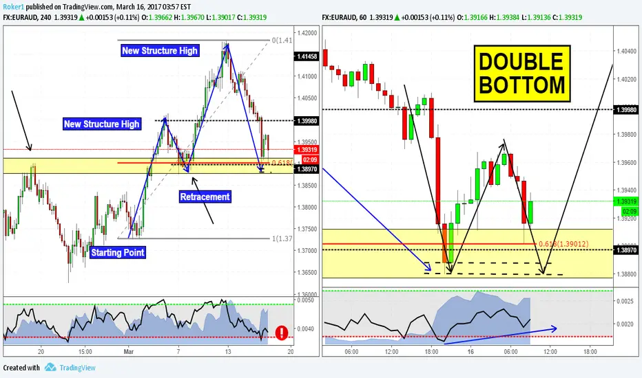 Right now price is sitting right in the previous support zone and it seems to be forming a double bottom (with RSI divergence) that could give us a nice trading opportunity.