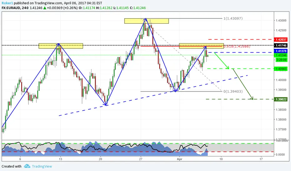 here we are on the 4H chart on EURAUD, i've been watching it for quite a bit now. As you can see price is now testing a key resistance level that also lines up with the 618 retracement of the previous leg. As soon as price came to that zone, it got immediately rejected by some selling pressure.
