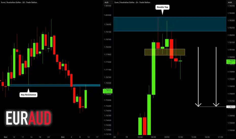 EURAUD will most likely drop from a key daily resistance level.