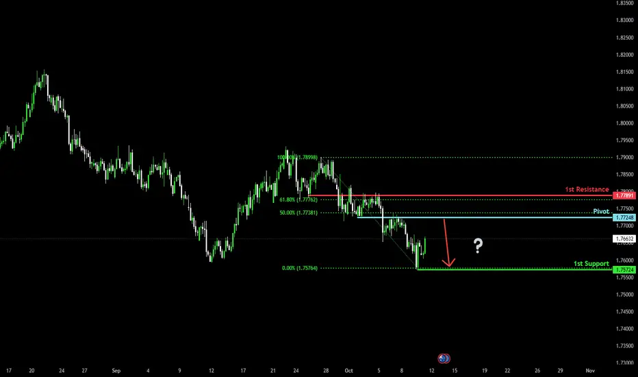 EUR/AUD is rising towards the pivot which acts as an overlap resistance and could reverse to the 1st support.