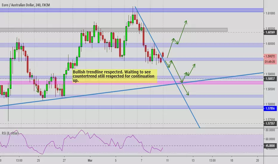 I really can't wait to get out of this zone. Bullish trendline is still respected to showing signs we're going up. Waiting to see if countertrend will still be respected for continuation or rejected for a bigger setup further down. Just have to wait and see.