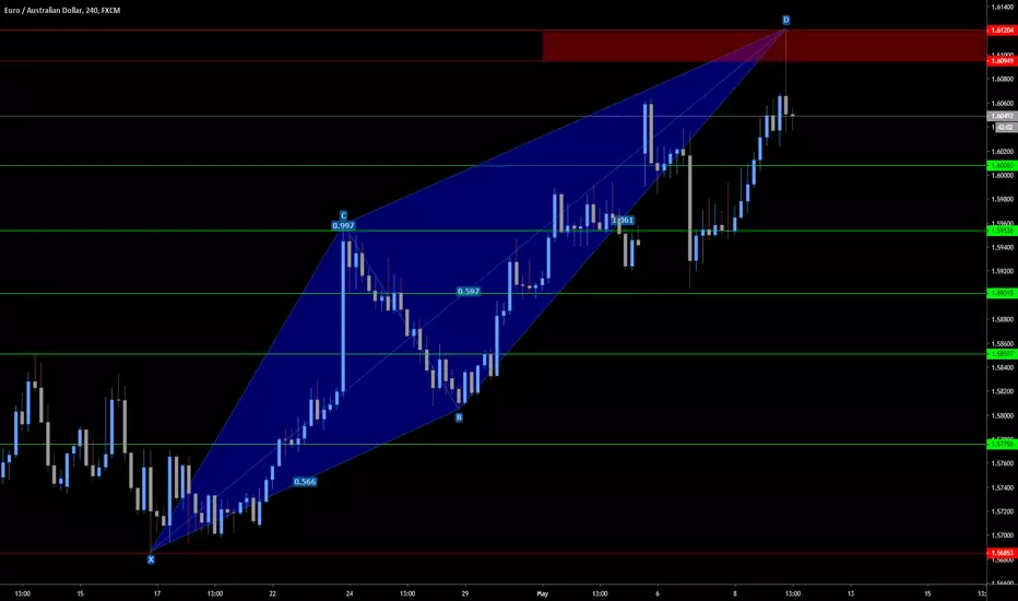 Price action has completed a ab=cd pattern on the 4 hr chart for this pair. The completion of the ab=cd pattern is in line with our short strategy therefore we added to our short position with take profits set on the green zones.