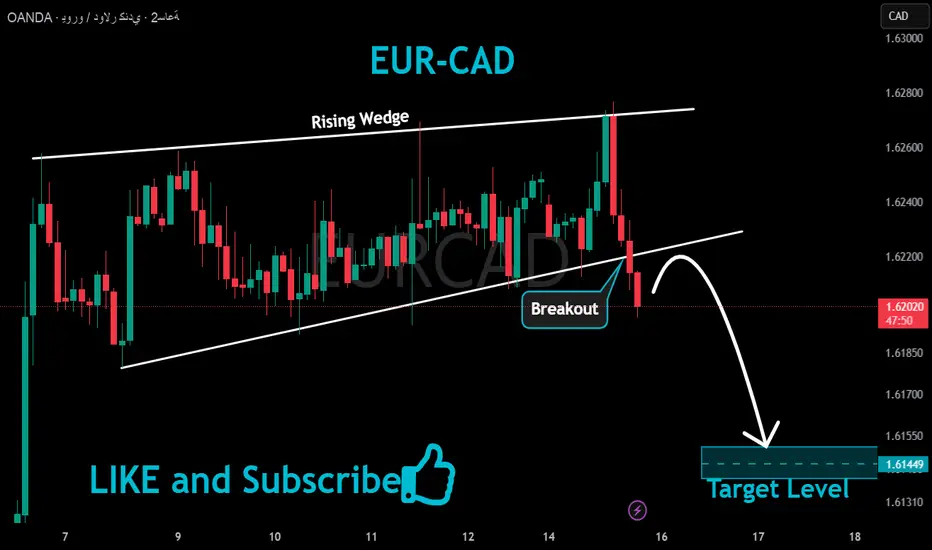 اخترق زوج #EURCAD نمط الوتد الصاعد،