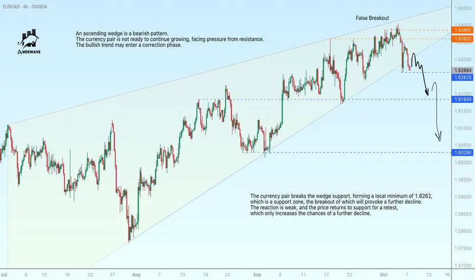 The ascending wedge is a bearish pattern. The currency pair is not ready to continue its growth, facing pressure from resistance. The bullish trend may enter a correction phase.